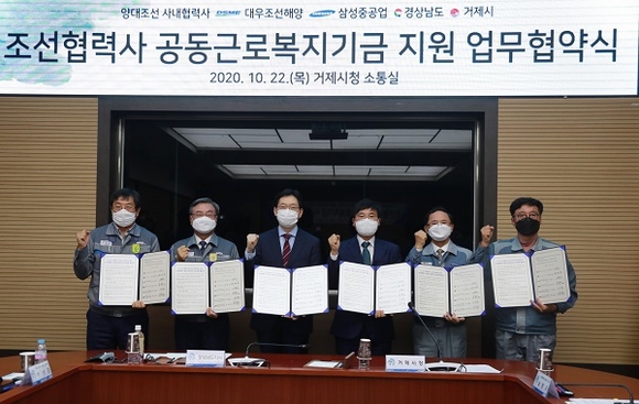 경남도는 22일 거제시청에서 조선업 공동위기 극복과 대형조선소와 사내 협력사의 상생을 위한 조선업 공동근로복지기금 지원 업무 협약을 체결했다. 이번 협약으로 사내협력사 공동근로복지기금에 지방비를 지원하게 되며, 이는 조선업계 전국 최초다.