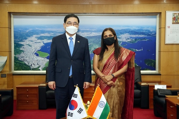 허성무 창원시장은 지난 21일 시청 접견실에서 스리프리야 란가나탄(Sripriya Ranganathan) 주한 인도대사의 방문을 맞아 코로나19 현황 및 창원시-인도 간 교류 협력방안에 대해 논의하는 시간을 가졌다.