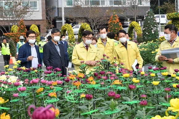 김일권 양산시장은 지난 21일 하북면 통도사 산문주차장 및 신평시가지 일원을 둘러보며 양산국화전시 개막 준비상황을 점검했다. '찾아가는 현장시장실' 일환으로 진행된 이날 현장행정에는 김 시장을 비롯한 관련부서 공무원들이 동행해 전시, 방역, 주차 등 전반적인 사항들을 확인했다.
