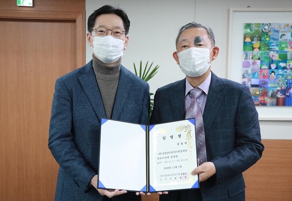 김경수 도지사는 이날 오전 집무실에서 신임 전점석 대표에게 임명장을 수여했다. 임기는 11월 1일부터 2년간이다.