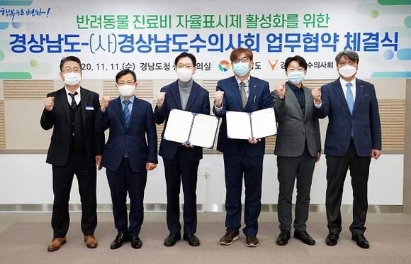 경남도는 11일 도청에서 경상남도수의사회와 '반려동물 진료비 자율표시제' 활성화를 위한 업무협약을 체결했다.