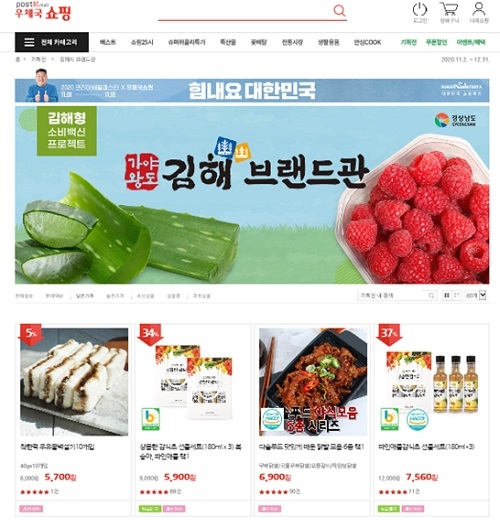 우체국 쇼핑몰 '김해브랜드관'은 김치, 떡, 단감, 꿀, 곱창전골, 스테이크 등 26개 업체 108개의 품목을 최대 37% 할인된 가격에 구매할 수 있으며, 시는 모든 상품의 할인 쿠폰을 지원해 판매 촉진 행사를 이달 말까지 진행한다.
