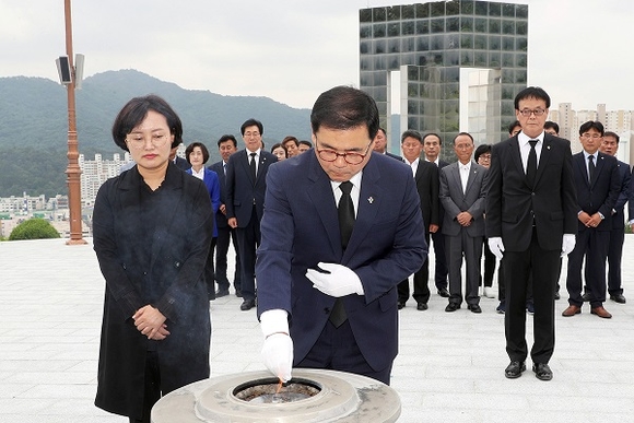순국선열들이 아니라면 오늘날 대한민국이 어떻게 있을 수 있겠습니까. 오늘 하루 선열들의 희생정신을 되새기며 경건한 마음으로 시정에 임하도록 하겠습니다. 시민 여러분께서도 선열들을 기억하는 하루가 되셨으면 합니다.