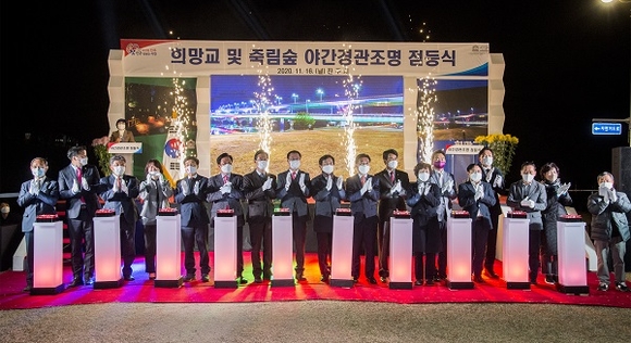 경남 진주시는 지난 16일 저녁 평거동 남강 둔치에서 '희망교 및 죽림숲 야간경관조명 설치 사업'의 준공을 기념하는 점등식을 가졌다.