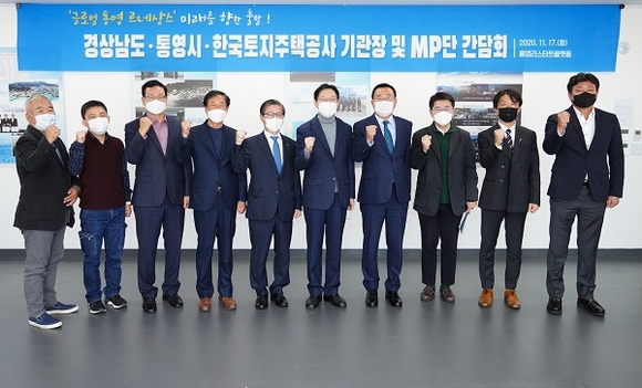 '글로벌 통영 르네상스, 미래를 향한 출발'이라는 비전으로 진행된 이번 간담회에는 김경수 경남도지사를 비롯한 강석주 통영시장, 변창흠 LH 사장과 통영 폐조선소 재생사업 총괄계획단(단장 강병근 건국대 교수) 위원들이 참석했다.