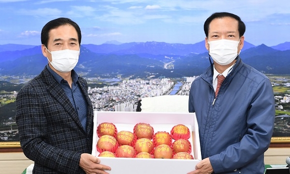 특히 수해 피해를 입은 곡성군에는 군민의 마음을 담아 조속한 피해극복을 염원하는 문구를 새겨 전달했으며, 곡성군은 이에 대한 감사의 의미로 문자사과를 생산해 이번에 보내온 것이다.