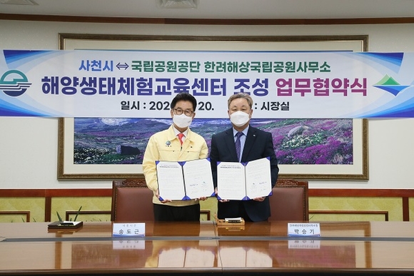 경남 사천시는 지난 20일 국립공원공단 한려해상국립공원사무소와 해양생태체험교육센터 조성을 위한 업무협약을 맺었다.