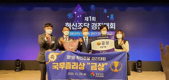 기획재정부와 조달청이 물품 등을 혁신적으로 조달한 우수사례를 공유하기 위해 올해 처음으로 개최한 '제1회 혁신조달 경진대회'에서 경남도가 금상(국무총리상)을 수상했다.