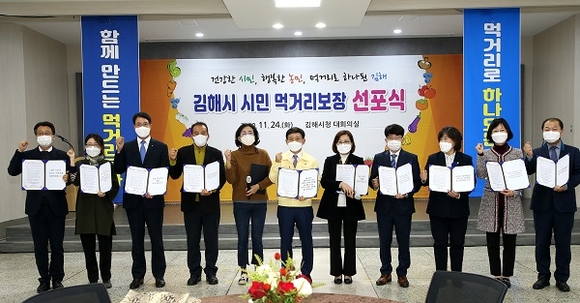 ◇김해 푸드플랜 수립…시민 먹거리 기본권 선포= 시는 24일 시청 대회의실에서 지역 먹거리 선순환 체계를 목표로 추진 중인 '김해 푸드플랜' 수립 연구용역의 최종보고와 함께 56만 김해시민 누구나 건강하고 안전한 먹거리를 보장받을 수 있는 '김해시민 먹거리보장 기본권'을 선포했다.