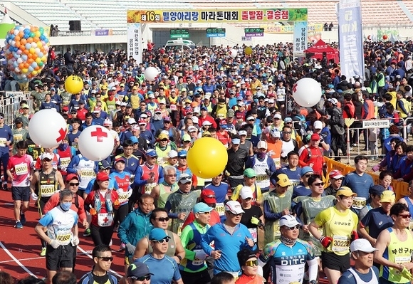 올해 17회인 '밀양아리랑마라톤대회'는 밀양시가 주최하고 밀양시육상연맹이 주관하는 대회로, 전국의 내로라하는 마라토너들이 참여하고 매년 1만명에 가까운 참가자와 관광객이 꾸준히 방문해 전국적으로 많은 관심을 받는 행사다.