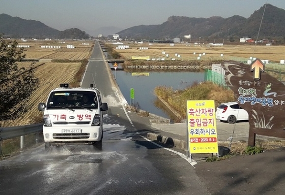 이와 더불어 매일 시 방역차량과 김해축협 공동방제단 차량을 이용해 화포천, 낙동강 주변 등 철새도래지와 주변 농가에 대한 소독을 강화하여 야생조류에 의한 바이러스의 농장 유입을 막고 있다.