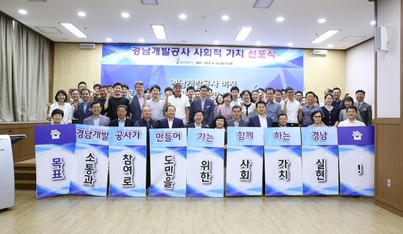 그동안 공사는 지난해 4월 사회적가치 비선 선포식을 통해 민선7기 경남도정 핵심과제인 '사회적 가치 경영' 실천에 적극 동참하고, 지방공기업으로서 사회적가치 패러다임을 이행하기 위한 공사만의 비전과 전략을 수립했다.