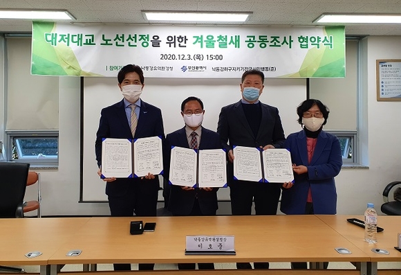 낙동강유역환경청은 부산시, 낙동강하구지키기전국시민행동(준)와 지난 3일 낙동강청에서 '대저대교 노선선정을 위한 겨울 철새 공동조사 협약'을 체결했다.