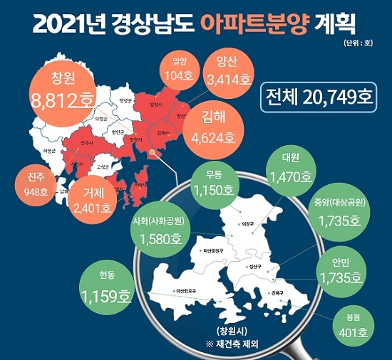 이를 위해 내년에 한국토지주택공사(LH), 경남개발공사 등 공공 3685호, 민간 1만 7064호 등 총 2만 749호를 조기 분양한다.