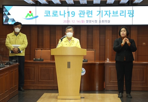 이에 밀양시는 14일 시청 소회의실에서 코로나19 상황에 대한 긴급 기자회견을 갖고 “관내 거주자 등 코로나19 확진자 2명(밀양34~35번)이 추가로 발생했고, 환자 발생 즉시 정밀 역학조사 중에 있다”고 밝혔다.