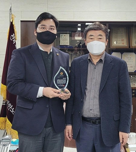 대한노인회 경남연합회는 21일 '경상남도 경로당 활성화 지원 조례'를 대표발의한 장종하 경남도의원(더불어민주당, 함안1)에게 감사패를 전달했다.