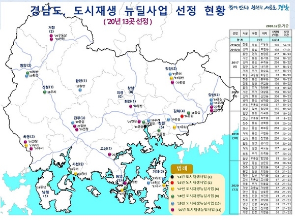 경남도가 국토교통부에서 주관하는 '2020년 도시재생 뉴딜사업' 공모에 총 13곳이 선정돼 역대 최다 성과를 거뒀다.
