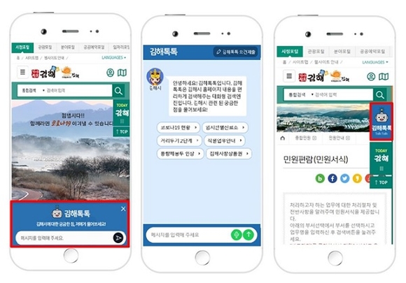 경남 김해시는 보다 쉬운 시 홈페이지 접근을 위해 대화형 검색시스템(챗봇)인 '김해톡톡'을 도입·운영 중이며, 시민으로부터 많은 인기를 얻고 있다고 22일 밝혔다.