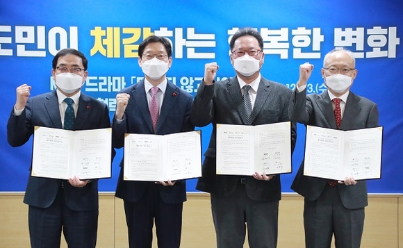 경남도와 창원시, MBC, ㈜아이윌미디어는 23일 도청 도정회의실에서 MBC드라마 '미치지 않고서야'의 제작 지원을 위한 업무협약을 체결했다.