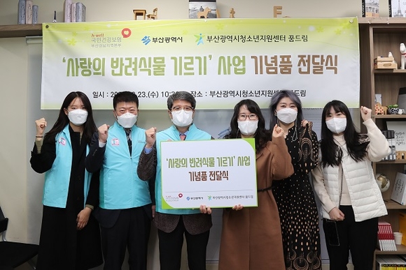 국민건강보험공단 부산경남지역본부는 23일 부산시청소년지원센터에서 '사랑의 반려식물 기르기' 사업 기념품 전달식을 가졌다.