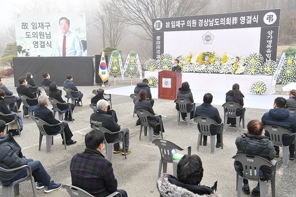 영결식은 「경상남도의회장에 관한 규정」에 따라 코로나19로 인한 엄중한 상황과 유족의사를 존중해 현지에서 간소하게 치러졌으며, 유족과 김하용 의장, 동료 의원, 하병필 행정부지사, 강영순 부교육감, 윤영석 국회의원, 서춘수 함양군수, 황태진 군의회의장 등이 참석해 고인의 마지막 길을 함께 했다.