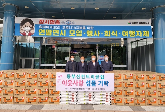 ㈜동부산컨트리클럽 임직원들은 연말연시를 맞아 지난 29일 양산 웅상출장소를 방문해 주위 돌봄 이웃들에게 전달해 달라며 쌀 20kg 56포와 라면 168박스(640만원 상당)를 기탁했다.