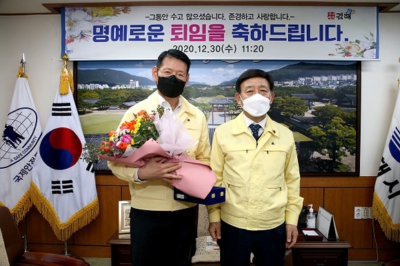 김해시 김환선 안전도시과장이 퇴임하는 날까지 코로나19 방역현장을 진두지휘하는 모습을 보여 후배 공무원들에게 좋은 본보기가 됐다.