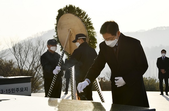 김경수 경남도지사가 4일 오전 국립3.15민주묘지와 창원충혼탑에 참배하는 것으로 2021년 새해 업무를 시작했다.