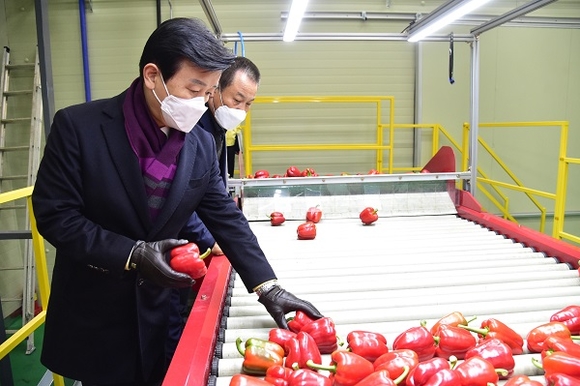 조규일 진주시장은 5일 오전 진주원예농협 산지유통센터(APC)를 방문해 농산물 유통현황 및 코로나19 방역사항 등을 점검했다.