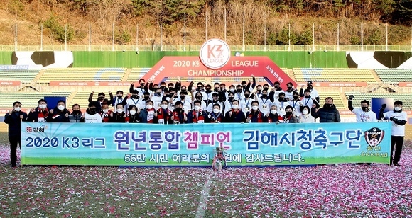 김해시청축구단은 `08년도 창단 이래 13년만에 우승을 거머줘 시민들을 기쁘게 했다. 김해FC는 작년 12월 5일 김해운동장에서 열린 통합 K3리그 챔피언전에서 숙적 경주한수원을 상대로 1승 1무의 경기를 펼친 끝에 우승 트로피를 들어 올렸다.