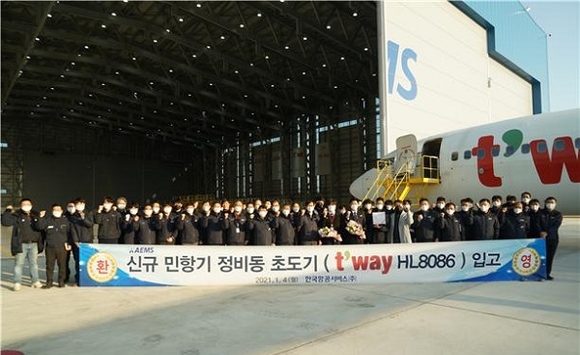 한편 지난 4일 KAEMS는 신축한 민간 항공기 정비 행가에서 티웨이항공 항공기를 초도기로 입고했다.