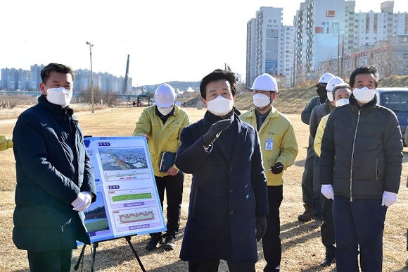 7일 오후 공사현장을 방문한 조규일 진주시장은 “하대둔치에 야외공연장과 체육시설 조성으로 도동 주민들의 건강과 문화체육 생활에 도움이 되기를 기대한다”며 “우리시는 진양교~금산교 구간의 남강둔치에도 친수 문화공간을 대폭 확충해 동부지역 시민들의 휴식과 힐링의 공간으로 탈바꿈토록 하겠다”고 말했다.