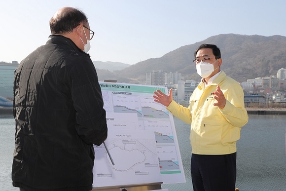 허성무 창원시장은 14일 마산합포구 마산해양신도시 건설사업 현장을 직접 방문해 사업추진 상황을 점검했다.
