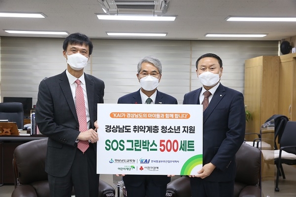 'SOS 그린박스'는 KAI가 후원하고 초록우산 어린이재단에서 선정한 진주, 사천, 고성, 산청교육지원청의 취약계층 중·고교 여학생 500명에게 1인당 4만원 상당의 위생물품을 지원하는 사업이다.