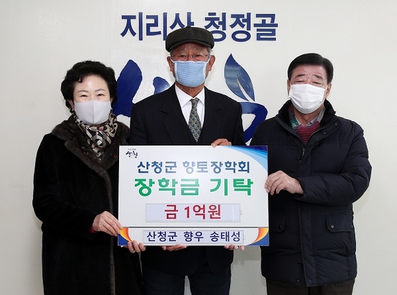 경남 산청군 신안면 출신으로 현재 부산에서 거주 중인 송태성(75)씨가 산청군향토장학회에 1억원을 기탁했다.