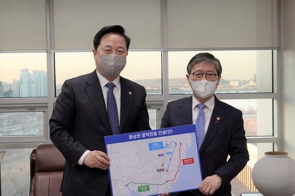 더불어민주당 김두관 의원(경남 양산시을)이 지난 19일 국회의원 회관 사무실에서 변창흠 신임 국토부 장관을 만나, 동남권 순환철도(부산~양산~울산) 건설사업을 제4차 광역교통 시행계획'과 철도 운영 효율화를 위한 중장기 계획인 '제4차 국가철도망 구축계획'에 조속히 반영해 줄 것을 강력하게 요청했다.