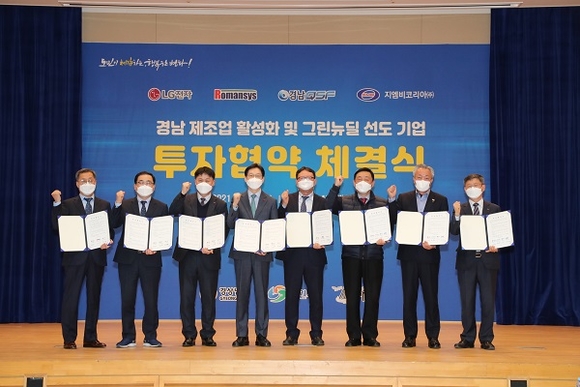 경남 창원시는 20일 오후 도청 대회의실에서 제조업 선도기업 LG전자, 로만시스, GMB코리아 3개사와 2157억원 규모의 투자협약을 체결하며 올해 첫 투자유치에 본격 시동을 걸었다.