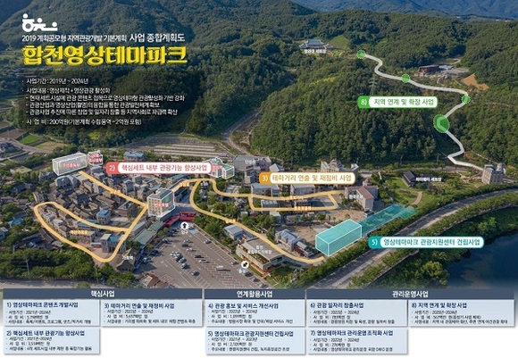이를 위해 지난 1년 동안 '합천군 계획공모형 지역관광개발 기본계획 수립용역'을 실시했으며, 합천영상테마파크 개발 여건 분석 및 관광객 실태조사, 활성화 기본구상, 세부적인 사업화 계획 등을 수립했다.