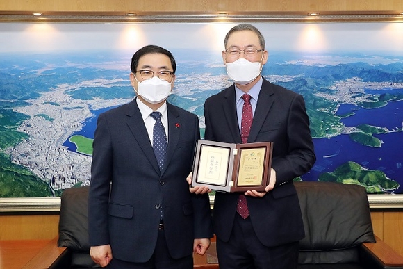허성무 창원시장은 22일 오전 시청 접견실에서 지역경제 발전에 기여한 공이 큰 LG전자 송대현 사장에게 감사패를 전달했다.