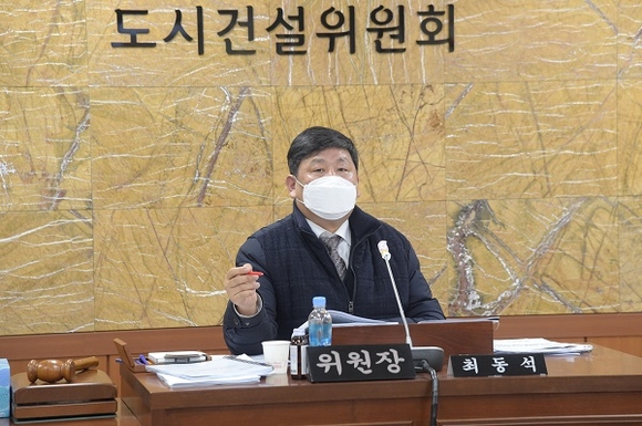 최동석 김해시의회 도시건설위원장이 21일 열린 제234회 김해시의회 임시회 도시건설위원회 제3차 회의에서 김해시 대중교통과의 2021년 주요업무계획 보고내용 중 장유지역 주민들의 숙원사업인 장유여객터미널 건립사업이 지연되고 있음을 지적하며 사업진행에 박차를 가할 것을 촉구했다.