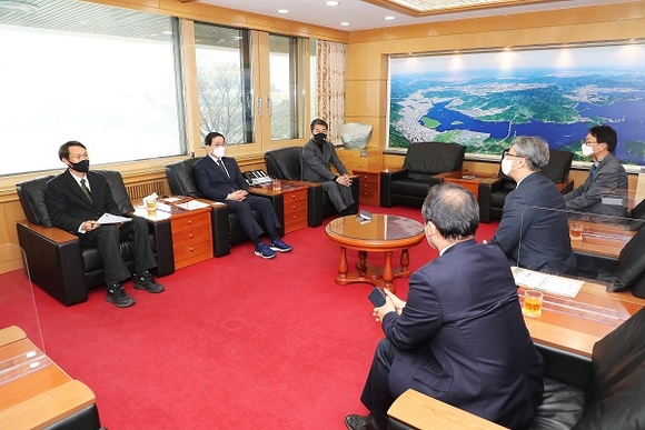허성무 창원시장은 22일 시청 접견실에서 박재현 한국수자원공사 사장과 간담회를 갖고, 댐용수 요금의 지원금을 올려달라는 취지의 공급규정 개정을 강력하게 요구했다.