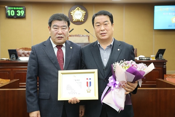 신재화 의원은 8대 초선의원으로 제8대 전반기 총무위원장, 후반기 산업건설 위원회 부위원장으로 활동하면서 평소 지방의정 발전은 물론 지난해 코로나19 방역과 집중호우 피해 복구 등 지역사회 발전을 위해 헌신적으로 봉사한 공로가 인정되어 수상자로 선정됐다.