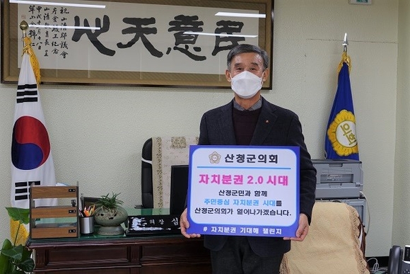심재화 산청군의회 의장은 25일 '자치분권 기대해' 챌린지 캠페인에 동참하며 “주민 중심 자치분권 시대를 산청군의회가 함께 열어나가겠다”는 메시지를 전달했다.