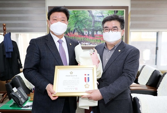 함양군의회 이용권 의원이 전국시·군자치구의회의장협의회로부터 활발한 의정활동과 군민과의 밀착 소통으로 고충 해결을 위해 헌신한 점을 인정받아 '지방의정 봉사상'을 수상했다.