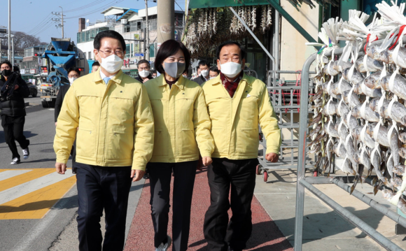 김영록 전라남도지사는 3일 설 명절을 앞두고 전현희 국민권익위원장과 영광을 찾아 수산물 판매 관계자들의 현장목소리를 듣는 등 민생현장 살피기에 나섰다.