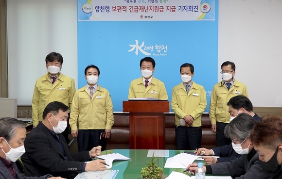 경남 합천군이 코로나19 위기 극복을 위해 전 군민을 대상으로 1인당 10만 원씩 코로나19 극복 합천형 긴급재난지원금을 지급하기로 했다.