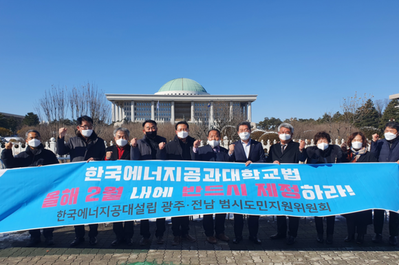 한전공대설립 광주‧전남 범시도민 지원위원회(위원장 이재훈, 이하 지원위라 한다.)는 4일 “한전공대 특별법을 올해 2월 내에 반드시 통과시켜야 한다”고 촉구했다.