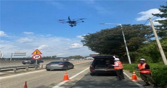 드론은 고속도로 25m 상공에서 3천만 화소 이상의 고화질로 법규위반 차량을 실시간 촬영하고, 도로공사는 위반 유형을 확인 후 스마트국민제보 앱과 안전신문고 앱을 활용하여 고발한다.