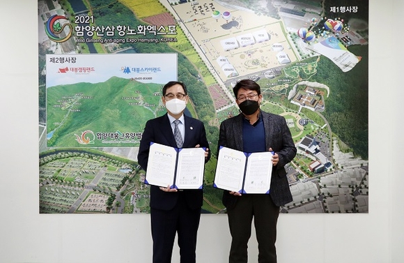 함양산삼항노화엑스포조직위원회는 지난 5일 사천그린자동차산업과 '2021함양산삼항노화엑스포'의 성공적 개최를 위한 업무협약을 체결했다.