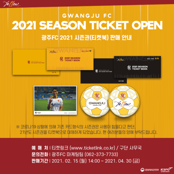 광주는 15일 더 높은 도약을 위한 2021시즌권을 이 날 오후 2시부터 온라인에서 판매한다고 밝혔다.